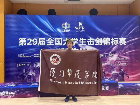 11月8日,第29届全国大学生击剑锦标赛在福州大学晋江校区圆满落幕,厦门华厦学院2025级环境科学与工程专业学生何玥阳表现优异,荣获甲组男子花剑个人第八名。